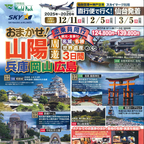【仙台発着】〈ツアー・ウェーブ〉おまかせ!山陽周…